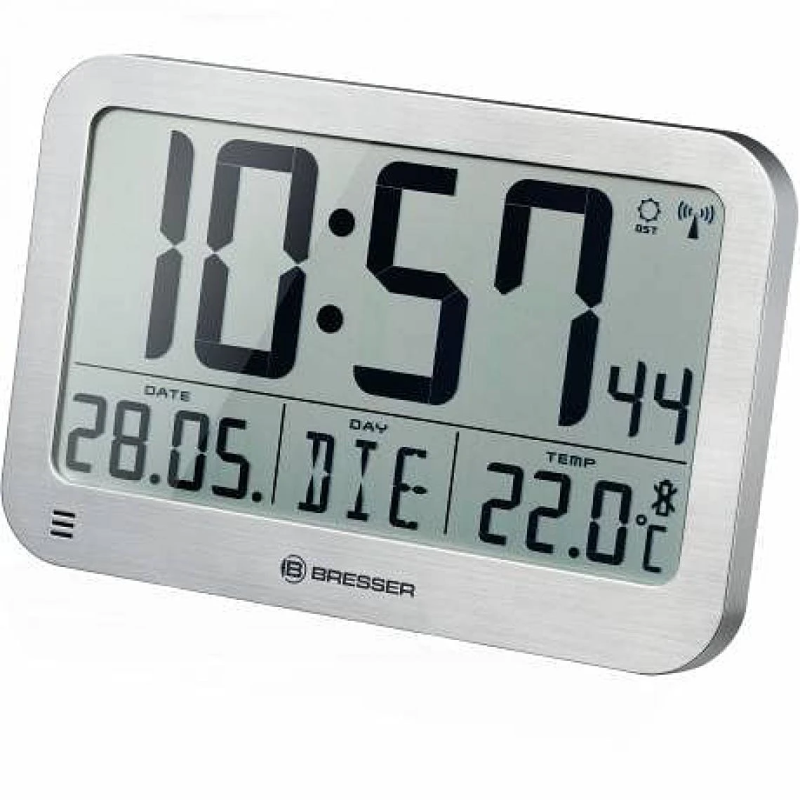 Points forts Bresser Horloge murale avec grand écran LCD et affichage de température couleur argent – Bresser