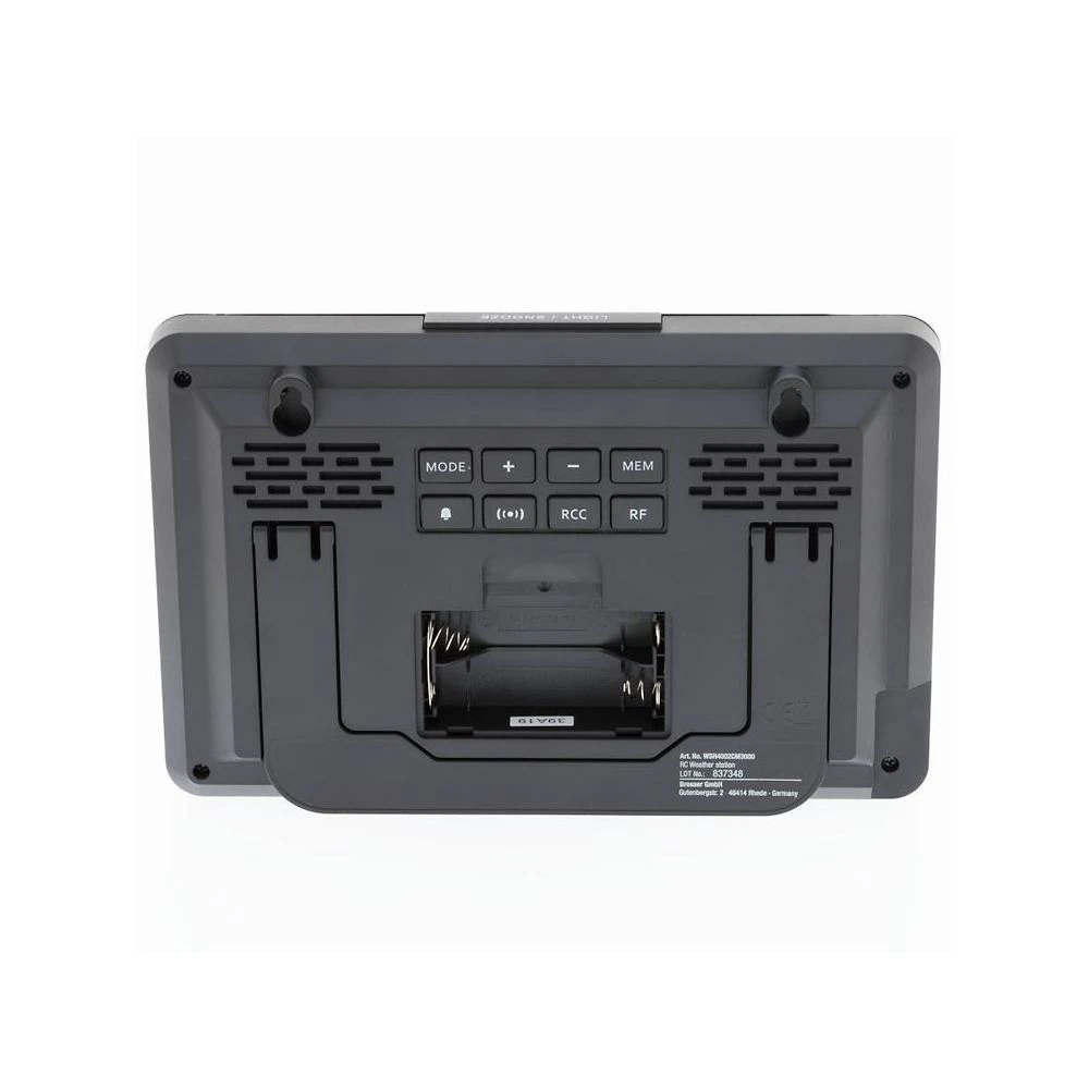 – Prévisions météo par pictogrammes pour les prochaines 12-24 h- Heure radio-pilotée (signal horaire DCF) et affichage de la date- Affichage de la température et de l’humidité de l’air- Rétroéclairage LCD blanc- Fonction de réveil et de répétition d’alarme- Enregistrement des valeurs maximales et minimalesLa station météo radio-pilotée EXPLORE SCIENTIFIC dispose de nombreuses fonctions, notamment les prévisions météo pour les prochaines 12-24 heures sous forme de pictogrammes, la mesure de la température et de l’humidité extérieure et intérieure ainsi que l’enregistrement des valeurs maximales et minimales. Lorsque la température descend entre 3 et -2 degrés Celsius, l’alerte de gel s’affiche puis disparaît à nouveau dès que la température se situe en dehors de cette plage. La touche Light/Snooze vous permet d’activer le rétroéclairage afin de pouvoir aussi lire les valeurs dans l’obscurité.Caractéristiques de la station de base :- Prévisions météo par pictogrammes (12-24 heures)- Température intérieure et extérieure (en degrés Celsius et Fahrenheit)- Température intérieure de -5 à 50 degrés Celsius- Température extérieure de -20 à 60 degrés Celsius- Humidité intérieure et extérieure de 25 à 95%- Date, heure et horaire de l’alarme- Réglage de l’heure manuel ou radio-piloté- Alerte en cas de gel- Enregistrement des valeurs maximales/minimales- Rétroéclairage LCD blanc- Réveil avec fonction de répétition de l’alarme (8 minutes)- Jusqu’à 3 capteurs peuvent être connectés- Avec support mural et pied de table- Dimensions : 185 x 26 x 121 mm- Poids : 280 g- 2 piles AA fourniesCaractéristiques du capteur :- Mesure de la température extérieure et de l’humidité de l’air extérieur- Portée de transmission : 30 m- Avec support mural et pied de table- Fréquence de signal : 433 MHz- Dimensions : 48 x 31 x 96 mm- Poids : 45 g- 2 piles AAAA fourniesContenu de la boîte :- Station météo- Capteur extérieur- 2 piles AA (station météo)- 2 piles AAA (capteur extérieur)- Mode d’emploi