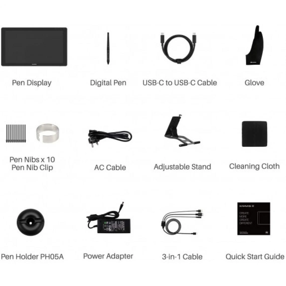 Vous pouvez facilement connecter la tablette à votre ordinateur avec le câble USB-C 3 en 1 pratique ou avec le câble USB-C vers USB-C complet (inclus). Un port USB-A est ajouté pour connecter une clé USB, un clavier, une souris ou d’autres périphériques. Elle prend non seulement en charge la connexion à Windows et macOS, mais prend également en charge la connexion à Android. Vous pouvez exprimer vos idées où et quand vous le souhaitez. Un support réglable est inclus pour vous donner encore plus de choix de positionnement. L’écran de 21,5” qui peut être placé de manière pratique sur votre table ou n’importe où à votre guise pour simplifier votre espace de travail. Un support réglable est inclus, qui peut être déplacé entre 20 et 80 degrés, vous aidant à vous mettre dans la position la plus confortable pour travailler et vous offrant le meilleur angle de vue pour dessiner.