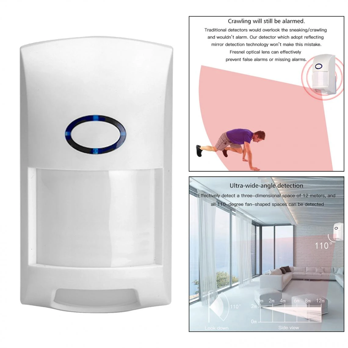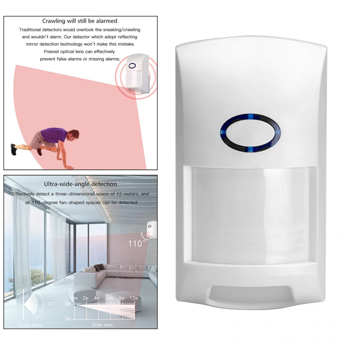 Alarme de détection de rampement: la technologie de détection de miroir réfléchissant, surmonte efficacement les lacunes des détecteurs traditionnels qui n’ont aucun avertissement de se faufiler et de ramper.