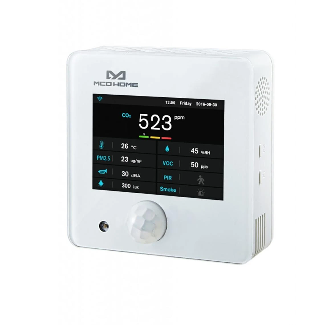 Capteur de qualité d’air 9en1 Z-wave+ a8-9 – MCOEA8-9 – MCO HOME MCO Home propose le capteur 9en1 Z-Wave + a8-9 (MCOEA8-9) pour surveiller régulièrement la qualité de l’air que vous respirez dans votre maison. De plus, avec ce moniteur, vous pouvez connaître la température intérieure, le taux d’humidité ambiante, la concentration de dioxyde de carbone et le niveau des gaz résiduaires des composés organiques volatils en temps réel. Ce capteur vous permet aussi de mesurer le bruit environnant en affichant les décibels pour que vous puissiez vivre dans la tranquillité. Grâce à cet équipement, vous pouvez aussi connaître l’intensité lumineuse dans une pièce et prendre éventuellement les mesures nécessaires. Le dispositif identifie également les particules de fumée dans l’air ambiant et vous alerte visuellement. Enfin, il intégre un détecteur de mouvement, un avantage pour votre sécurité. C’est un moniteur avec 9 capteurs intégrés. Ils sont utilisés principalement pour mesurer la qualité de l’air intérieur, le bruit environnant et l’éclairage, mais aussi pour avoir un œil sur les mouvements dans un logement. L’appareil est doté d’un écran d’affichage LCD rétroéclairé. Compatible avec n’importe quel réseau Z-Wave, il peut être raccordé avec tous les autres appareils certifiés Z-Wave. Caractéristiques principales : Type de module : Emetteur Z-Wave Matériau : Verre trempé et alliage plastique Alimentation : 12V DC Auto-dissipation:
