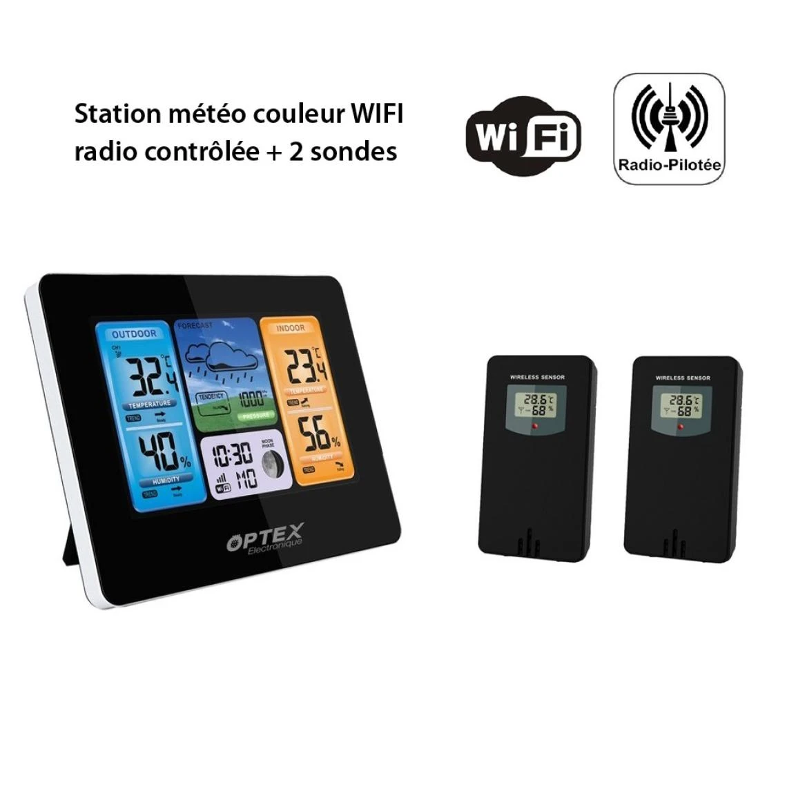 Points forts Optex Station météo couleur WIFI radio contrôlée – Intérieure Extérieure, -40 à +70°C Horloge App Portée 60m 2 Sondes extérieures Incluses