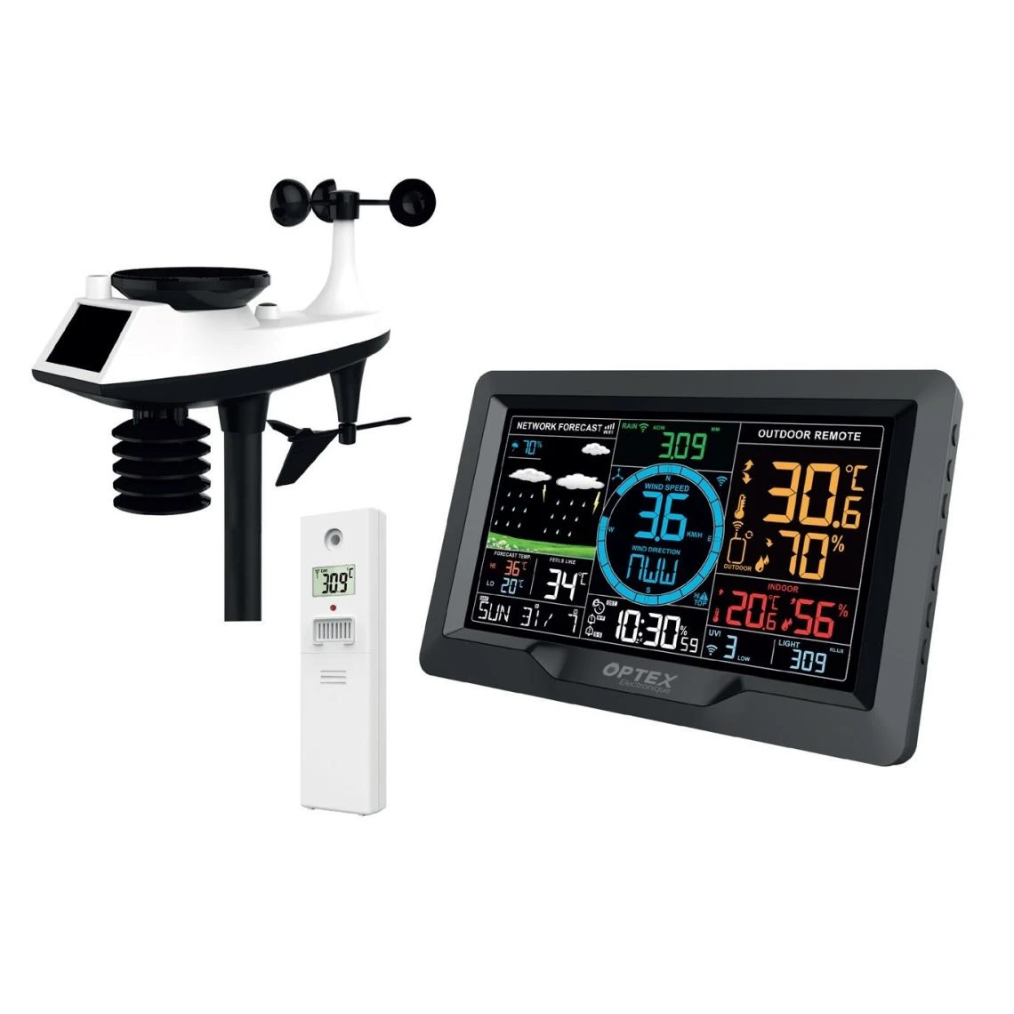 Points forts Optex Station Météo Professionnelle WIFI / Radio Contrôlée – Couleur Avec Capteur 5 en 1 et Sonde sans Fil Extérieure