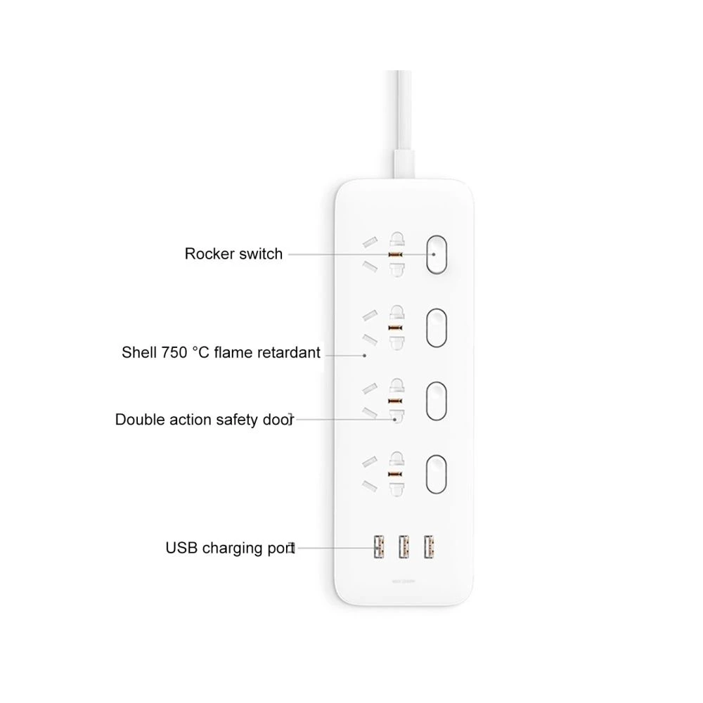 Prise Connectée pour la maison, bureau D’origine Xiaomi Mijia Power Socket Strip 4 Sockets Big plug extension Patch Board avec 4 commutateurs de contrôle et 5V / 2.1A 3 ports USB