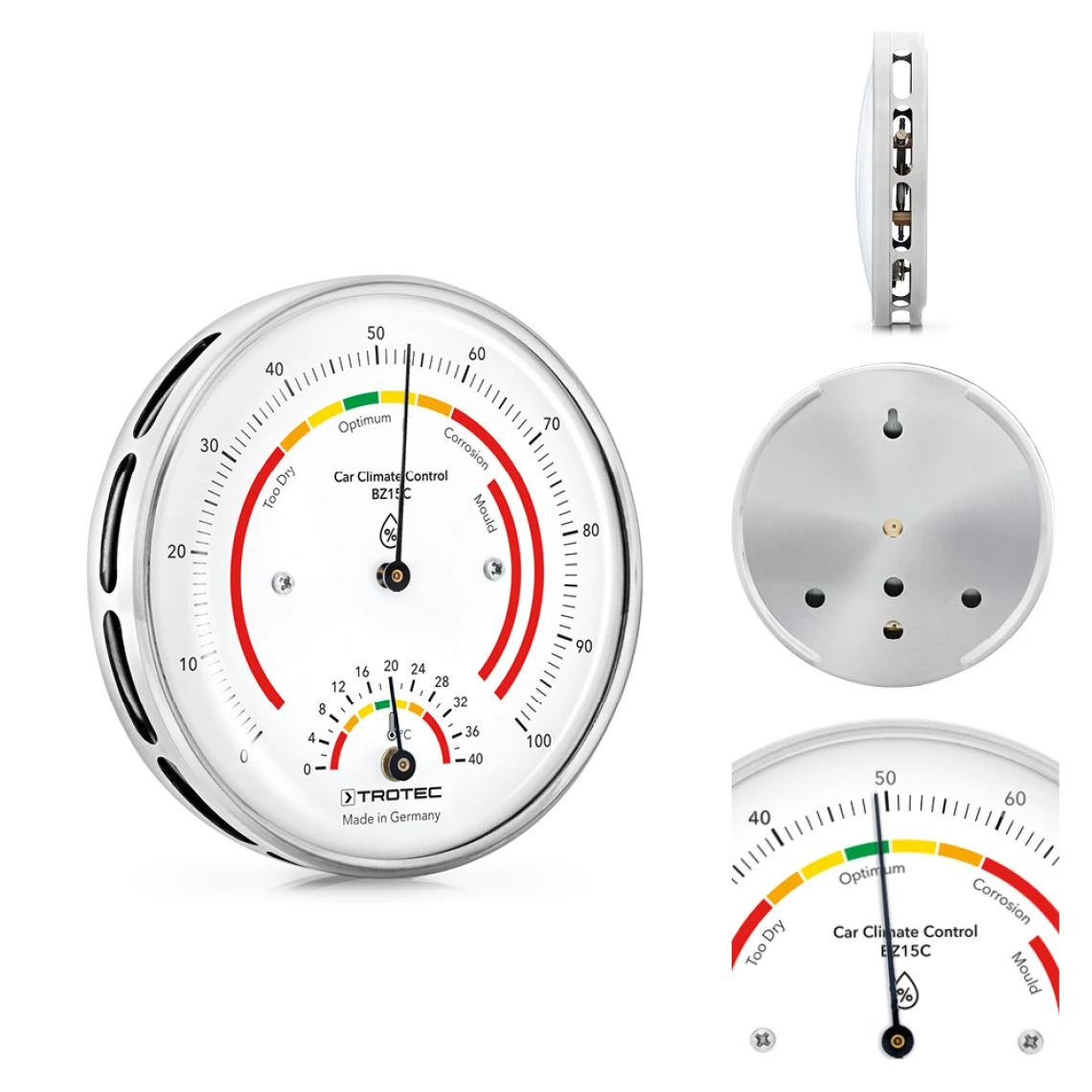 Le thermo-hygromètre BZ15C est un outil précieux pour les propriétaires de voitures de collection soucieux de protéger leurs véhicules contre l’humidité et l’air sec. Il importe en effet que les garages où sont remisés des véhicules anciens aient la bonne hygrométrie afin d’éviter des débuts de corrosion au niveau de la carrosserie et de déssèchement du cuir et des éléments en plastique.