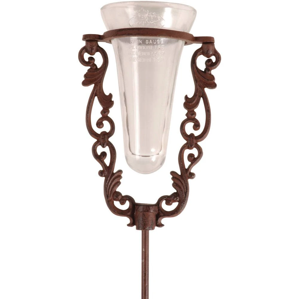 Points forts Water In The Garden Pluviomètre de jardin en verre avec support en fonte.