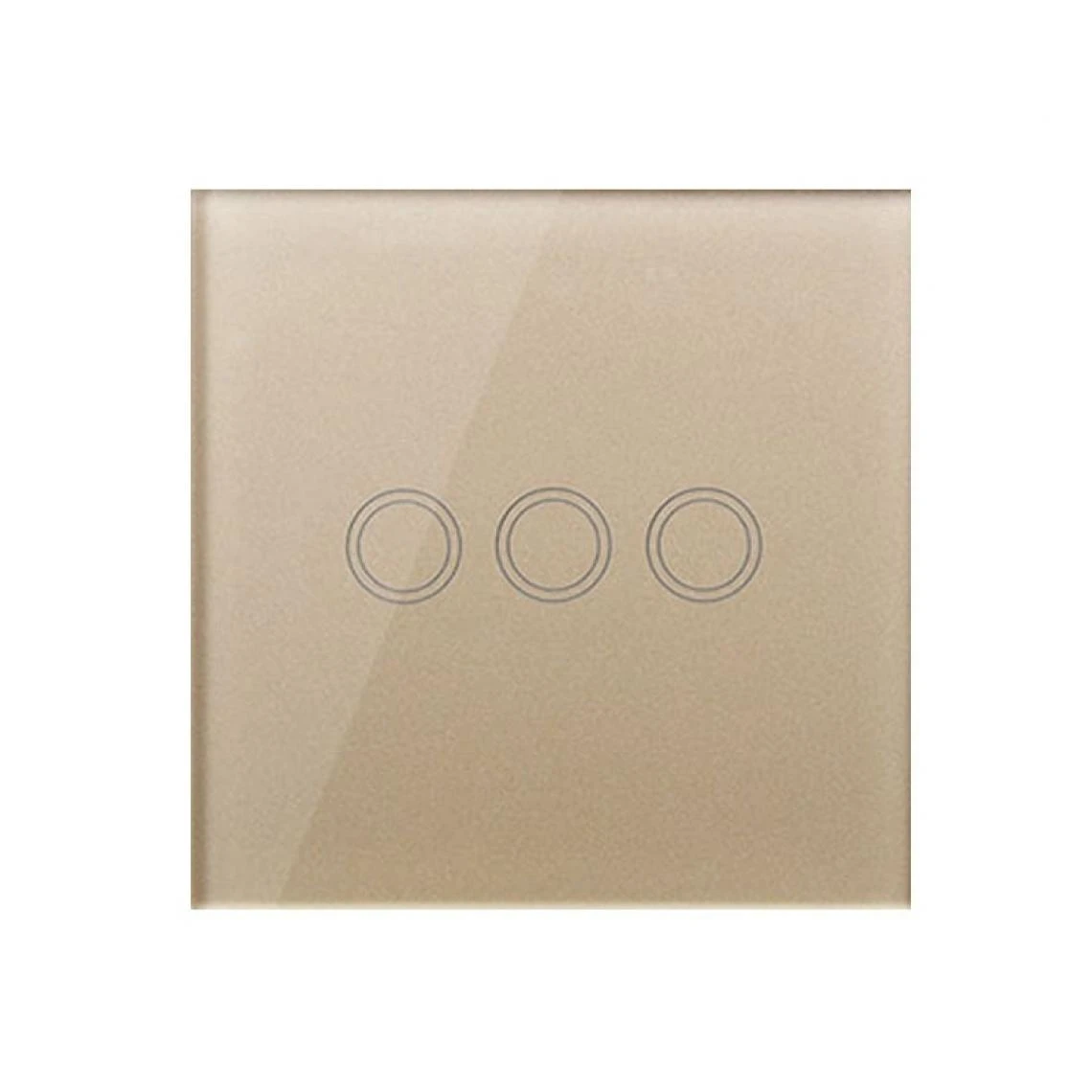 Interrupteur sans fil or 86mm Verre Trempé Panneau Mural Smart Home Light 3 Boutons tactile avec Télécommande RF 433, AC 110V-240V