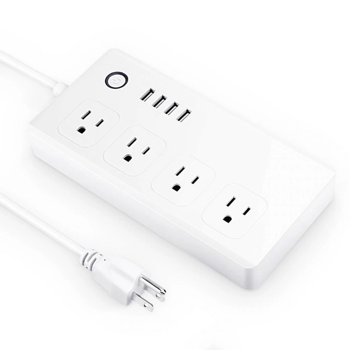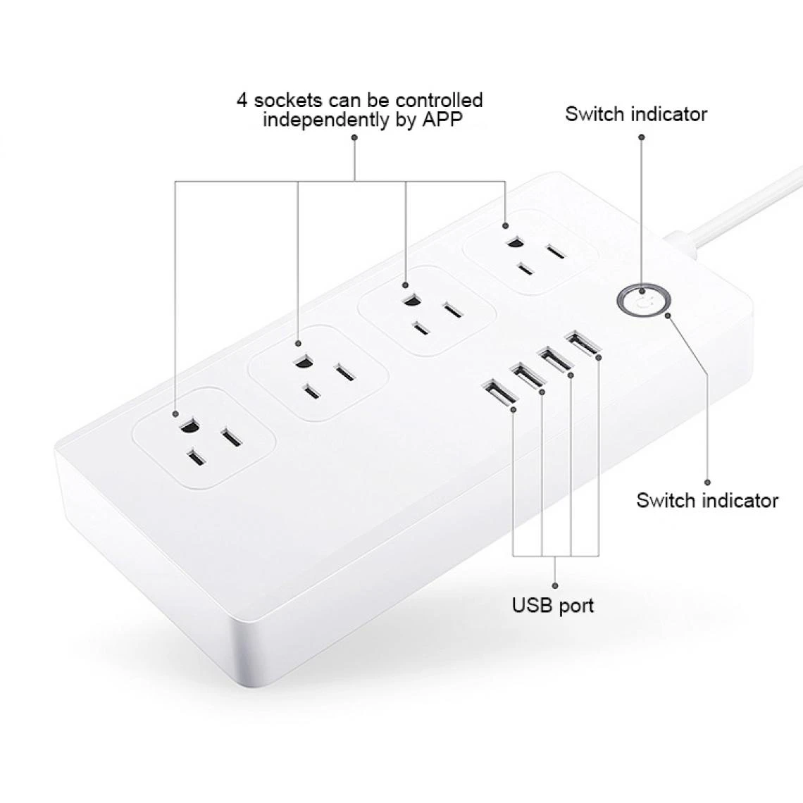 Prise Connectée 4 ports USB + 4 x US Plug Jack télécommande WiFi Smart Power Socket Fonctionne avec Alexa et Google Home, AC 110-240 V, américaine