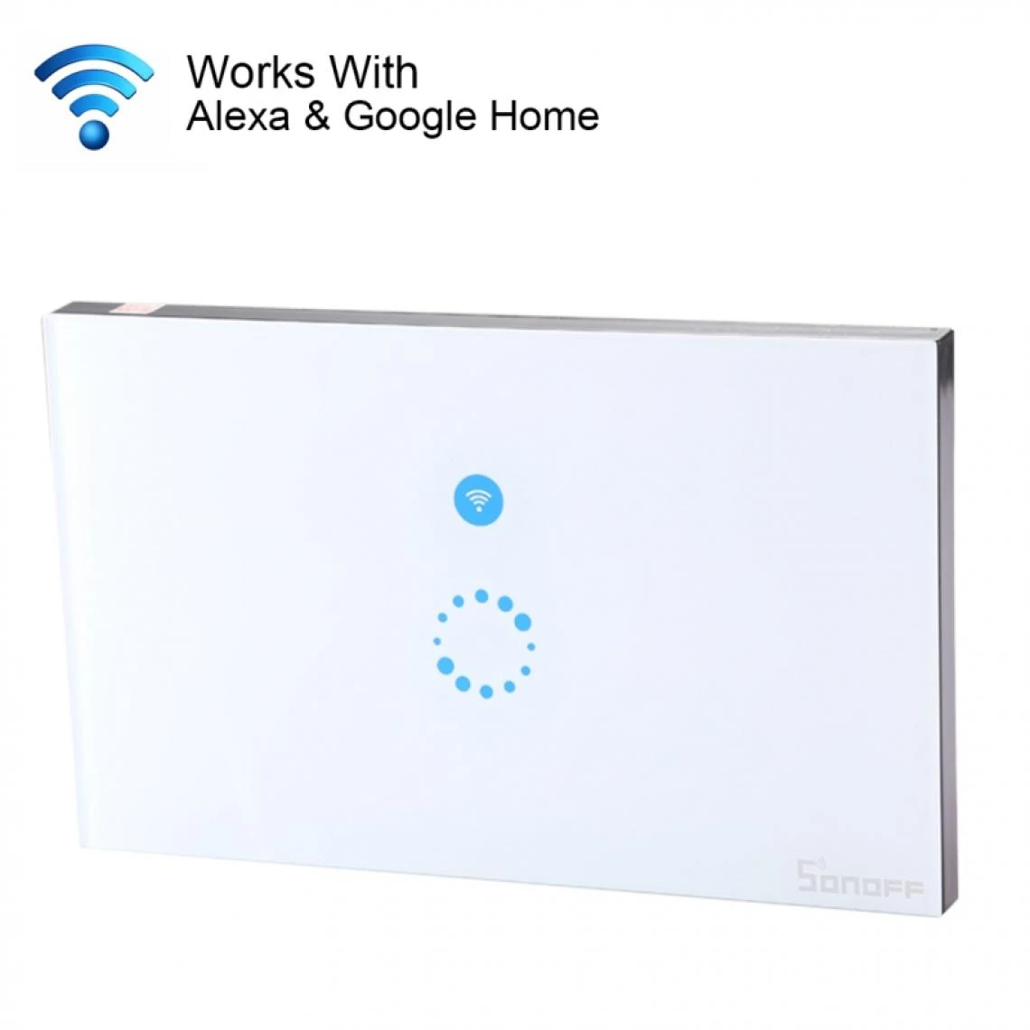 Points forts Wewoo Prise Connectée Touch 120mm 1 Gang 1 Voie Verre Trempé Panneau Interrupteur Mural Smart Home Light Touch avec Alexa et Google Home, AC 90V-250V 400W 2A