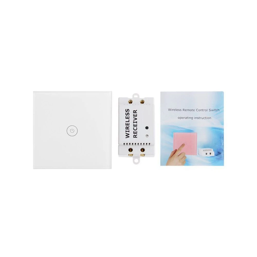 Interrupteur Tactile Simple Voie Sans Fil Récepteur Porté 30 Mètres Design Blanc